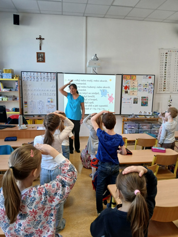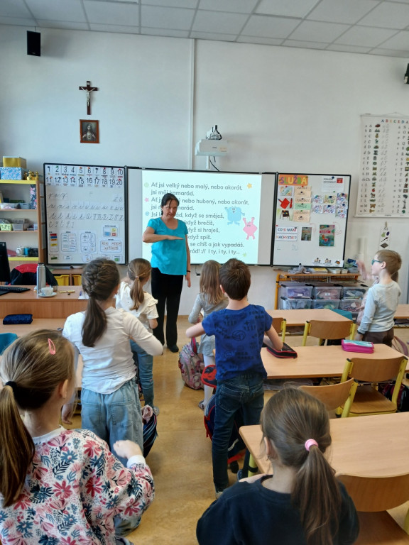 Ve čtvrtek 19. 3. navštívila 1. třídu paní Zajíčková z Etických dílen a přivezla s sebou i opičku Julču. Ta nás provázela celým programem zaměřeným na kamarádství a vztahy ve třídě. Děti se naučily písničku o kamarádství, hrály hry zaměřené na podporu komunikace a spolupráce a také si vyzkoušely metodu hraní rolí. Z preventivního programu si odnesly tři dobré rady: Mluv se všemi hezky, nikoho neodstrkuj a nikomu neubližuj! Snad na to nezapomeneme a budeme se těchto rad nejen v naší třídě držet.